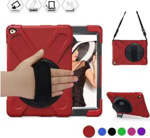 iPad Air 2 Case 9.7 Inch 2014 Case for iPad Model A1566 / A1567, 360 Degrees Built-in Stand Heavy Duty Hand&Shoulder Strap Full-Body Protective Case for iPad Air 2 Red