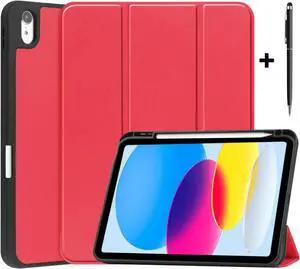 Case Compatible with iPad 10th Generation 10.9 Inch 2022 with Pencil Holder, Protective Stand Cover with Soft TPU Back, Auto Sleep/Wake with Universal Stylus Pen Red