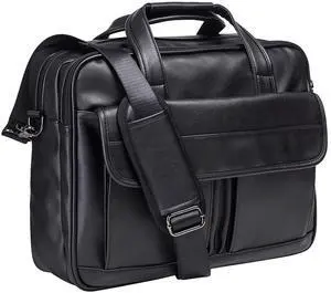 seyfocnia Men's Leather Messenger Bag, 15.6 Inches Laptop Briefcase Business Satchel Computer Handbag Shoulder Bag for Men (Black)