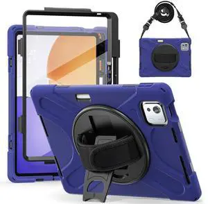 WERLEO Case for Xiaomi Pad 7S Pro 12.5 inch 2025 Shockproof Cover with Built-in Screen Protector 360 Rotate Stand Hand Strap Shoulder Strap Pencil Holder Navy Blue