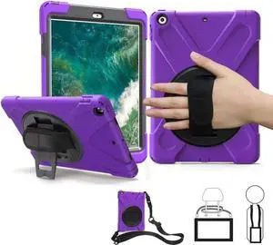 iPad Air 1st Genearton Case for Kids 2013 | TSQ iPad Air First Generation Case Rugged Shockproof | Three Layer Durable Case w/Stand Hand Shoulder Strap for iPad Air 1 A1474 A1475 A1476 Purple