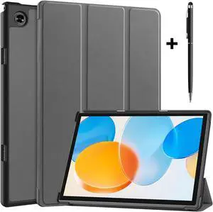 Case for Teclast M40 / M40 Pro / P20S / P20HD, Tri fold Slim Lightweight Hard Shell Smart Protective Cover with Multi-Angle Stand, Universal Stylus Pen Gray