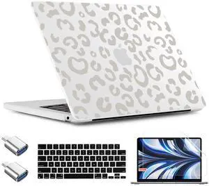 TWOLSKOO for MacBook Air 13 inch Case M4 A3240 M3 A3113 M2 A2681 2025 2024 2022 Plastic Hard Shell, Keyboard Cover, Type C Adapter, Screen Protector for MacBook Air 13.6 inch, Gray Leopard PRT