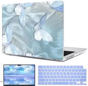 LCMOCICO for MacBook Pro 14 inch Case 2025 2024 2023 2022 2021 Model M5 A3434 M4 A3112 A3185 A3401 M3 A2918 A2992 M2 A2779 M1 A2442 Pro/Max Chip,Pattern Plastic Hard Shell Cover, Tin Foil Butterfly