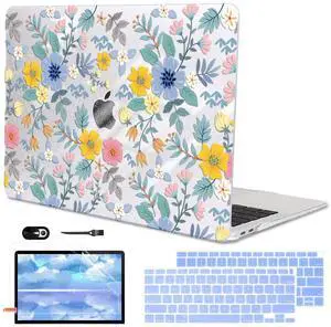 CISSOOK for MacBook Air 13 inch M2 M3 M4 Case 2022 2023 2024 2025 Release, Flower Hard Shell Cases with Keyboard Cover OTG Adapter for MacBook Air 13.6 inch A3240 M3113 A2681