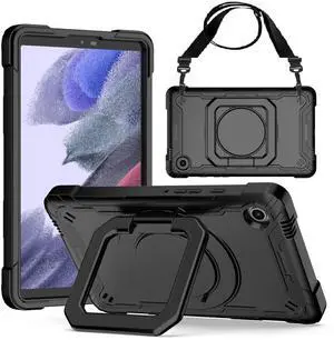 Galaxy Tab A11 / A9 Case 8.7" - Full Body Rugged Protective Cover with Rotating Grip Magic Stand and Shoulder Strap Case for Samsung Galaxy Tab A11 / Samsung Galaxy Tab A9 8.7 Inch Tablet - Black