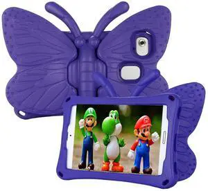 Tading Alcatel Joy Tab 2 Case for Kids, Cute Butterfly Shockproof Light Weight Protective Stand Bumper Cover for Alcatel Joy Tab 2 Tablet 8 inch 2020 (Model: 9032Z) - Purple