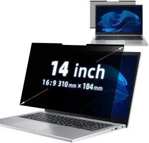 MokaZii Nano-Adsorption Laptop Privacy Screen 14 inch 16:9, Removable Laptop Privacy Screen Protector, Anti Glare Blue Light Touchscreen compatible, Computer Private Filter