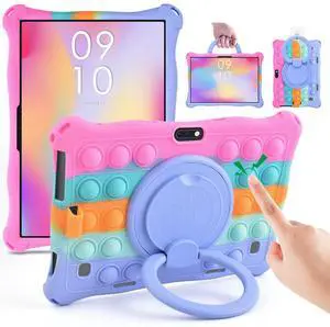 DETUOSI Case for YELLYOUTH 10.1 Tablet, Soft Silicone Lightweight Case Compatible with Dragon Touch Notepad K10, ZONKO 10.1, Beyond Tab 10.1, with Stylus Pen and Shoulder Strap, Orange Pink Blue