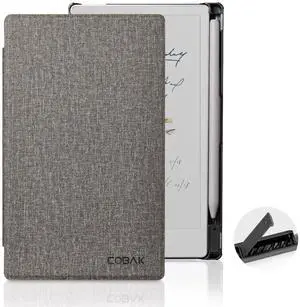 CoBak Case for Remarkable Paper Pro Move 7.3 inch 2025, Hard Back Shell Protective Lightweight Auto Wake/Sleep Smart Folio Cover with Built-in Pen Holder and Nibs Holder (Gray)