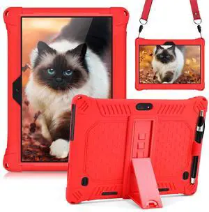 DETUOSI Case for YELLYOUTH 10.1 Tablet, Soft Silicone Lightweight Case Compatible with Dragon Touch Notepad K10, ZONKO 10.1, Beyond Tab 10.1, with Stylus Pen and Shoulder Strap, Red