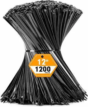 1200pcs Black Cable Zip Ties 12 Inch Heavy Duty Plastic Nylon Tie Wraps with 50lb Tensile Strength for Indoor & Outdoor