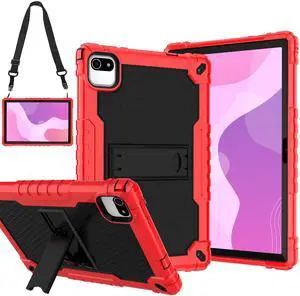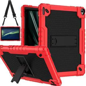 Doemoil Case for YQSAVIOR Tab CP10 10.1 inch - Built-in Shoulder Strap & Kickstand, Soft Silicone Hard Back, Kids Friendly (Red+Black)