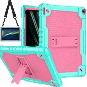 Doemoil for YQSAVIOR Tab CP10 10.1" Case/Coopers Tab CP10 10.1 inch Case Built in Shoulder Strap & Kickstand Soft Silicone Hard Back Kids Friendly Case Cover for YQSAVIOR Model CP10 (Green+Pink)