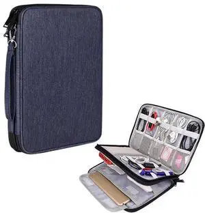 SM01 Multi-function Waterproof Double Layer Data Cable Earphone U Disk Digital Accessories Storage Bag, Size: L Size: L(Navy Blue) (Navy Blue) Black