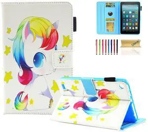 Dteck Case for Kindle Fire 7 Tablet 9th/7th/5th Generation 2019/2017/2015 Release,Multiple Viewing Angles Stand Smart Shockproof Protective Wallet Case with Auto Sleep/Wake Fire 7 Case,Baby Unicorn