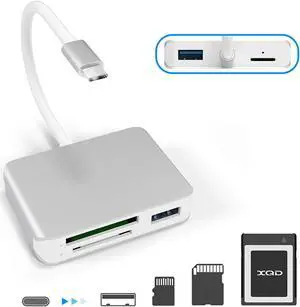 XQD Card Reader USB C XQD/SD/TF Card Reader Type C Dual USB3.0 Card Adapter Read 3 Cards for SD(HC/XC) TF Sony G Series Lexar USB Mark Card Compatible for Type-C Laptop Support Windows/Mac OS