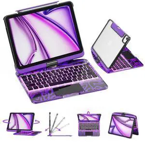 GUSGU Transparent Case with Wireless Keyboard for iPad Air 13-in.(M3/M2, 2025/2024), 7 Colors Backlight, Trackpad, 360Rotating Stand for iPad Pro 12.9-in (6/5/4/3 Gen), Tech Style