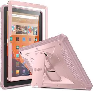 Fintie Shockproof Case for All-New Fire HD 10 Tablet (13th Generation 10.1", 2023 Release), [Tuatara] Rugged Unibody Hybrid Bumper Kickstand Cover with Built-in Screen Protector, Light Pink