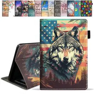 FVAENDHIO Case for All-New Kindle Fire HD 10 & 10 Plus Tablet 10.1" (13th/11th Generation, 2023/2021 Release) - Premium PU Leather Cover with Auto Sleep Wake, American Flag Wolf