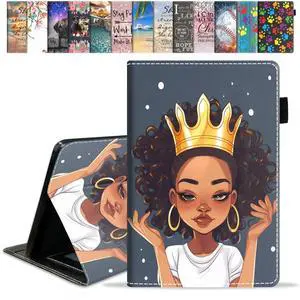 FVAENDHIO Case for Kindle Fire HD 10 & 10 Plus Tablet 10.1" (13th/11th Generation, 2023/2021 Release) - Premium PU Leather Cover with Auto Sleep Wake, African American Girl Wearing Crown