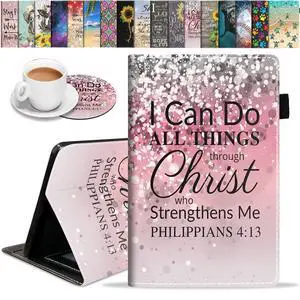 Case for Fire HD 10 Tablet (9th/7th Gen, 2019/2017 Release), Premium PU Leather Cover with Auto Sleep Wake Feature Folio Case for Fire 10.1" Tablet, Pink Glitter Bible Verse Philippians 4-13