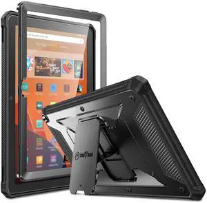 Fintie Shockproof Case for All-New Fire HD 10 Tablet (13th Generation 10.1", 2023 Release), [Tuatara] Rugged Unibody Hybrid Bumper Kickstand Cover with Built-in Screen Protector, Black
