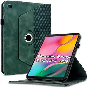 Varohix Case for Samsung Galaxy Tab A 10.1 2019 (SM-T510/T515),360 Degree Rotating PU Leather Folio Protective Case,Card Holder&Shoulder Strap for Woman Man,Retro Green