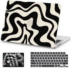 AKIT Compatible with MacBook Pro 16 inch Case 2025 2024-2021 M4 M3 M2 M1 Pro Max A3403 A3186 A2991 A2780 A2485, Unique Pattern Hard Shell Laptop Case+Screen Protector+Keyboard Cover, Black Wave