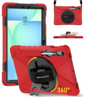 BRAECN for Samsung Galaxy Tab S6 Lite Case, Heavy Duty Rugged Cover with [Rotating Hand Strap] [Carrying Shoulder Strap] [Kickstand] [S Pen Holder] for Galaxy Tab S6 Lite 10.4 2024/2022/2020 -Red