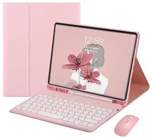 AnMengXinLing Galaxy Tab S8/Tab S7 11 Inch (Model SM-X700/X706/T870/T875/T878) Case with Keyboard and Mouse Combo, Retro Round Keys Detachable Bluetooth Keyboard Cover with S Pen Holder (Pink)