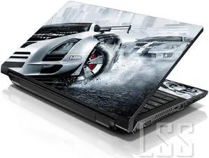 LSS 15 15.6 Inches Laptop Notebook Skin Sticker with 2 Wrist Pads - Reusable Cover Protector Vinyl Sticker Cover Decal Fits 13" - 16" - Silver Porsche Car Pattern
