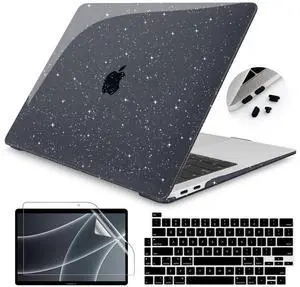 Teryeefi for MacBook Pro 13 Inch Case 2022 2021 2020 2019 2018 2017 2016 Release A2338 M1 M2 A2289 A2251 A2159 A1989 A1706, Sparkly Hard Shell Cover +Keyboard Cover + Screen Protector, Glitter Black