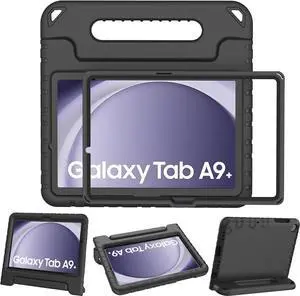 LTROP Shockproof Lightweight Convertible Handle Stand Case for Samsung Galaxy Tab A9 Plus 2023 11 Inch (SM-X210/X216/X218) with Built-in Screen Protector, Galaxy Tab A9 Plus Case for Kids, Black