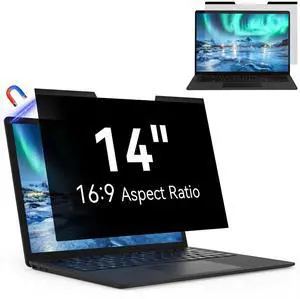 Mao Yeye Magnetic Laptop Privacy Screen 14 Inch 16:9 Aspect Ratio Anti-Glare Blue Light Monitor Protector,Removable 14in Film for Lenovo HP Dell Acer Asus Thinkpad Envy Xps