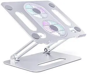 Height Adjustable Cooling Stand for Laptop Sturdy Desktop Stand Aluminum Dual Fan Cooling for Tablet and Laptop Stands Silver
