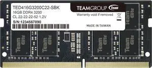 TEAMGROUP Elite DDR4 16GB Single 3200MHz PC4-25600 CL22 SODIMM 260-Pin Memory