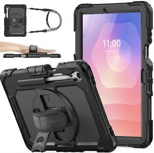 SEYMAC stock Case for Samsung Galaxy Tab S11 Tablet Case 11'' Protective with Screen Protector, Pencil Holder, 360 Degree Rotate Kickstand, Hand Strap, Shoulder Strap, Black