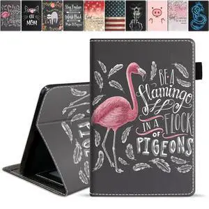 FQTBCEARI Case for Kindle Fire 7 Tablet (9th/7th Generation, 2019/2017 Release), Be a Flamingo in a Flock Pigeons Inspirational Quote Slim PU Leather Cover with Card Slot & Pencil Holder