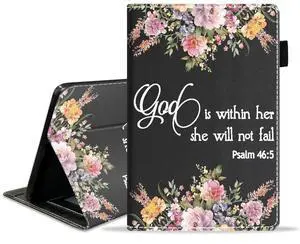 WEUIUJKILO Case for All-New Kindle Fire HD 10 Tablet 10.1 Inch (9th/7th Generation, 2019/2017 Release), Slim PU Leather Stand Cover with Auto Sleep Wake, Floral Quote Bible Verse Psalm 46:5
