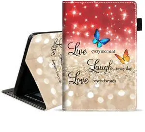 WEUIUJKILO Case for All-New Kindle Fire HD 10 Tablet 10.1 inch (9th/7th Generation, 2019/2017 Release) - Red Glitter Quote Live Laugh Love Design Slim PU Leather Stand Cover with Auto Sleep Wake