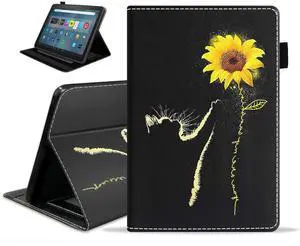 TBXOSTN Case for Kindle Fire 7 Tablet (7" Display, 9th/7th Generation, 2019/2017 Release), Premium PU Leather Stand Cover with Smart Auto Wake, Sunflower and Blue Butterfly