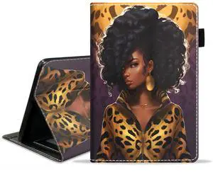 WEUIUJKILO Case for Kindle Fire HD 10 & 10 Plus Tablet 10.1" (13th/11th Generation, 2023/2021 Release) - Slim PU Leather Stand Case with Auto Sleep Wake, African American Girl