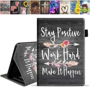 TBXOSTN Case for Kindle Fire 7 Tablet (7" Display, 12th Generation, 2022 Release), Stay Positive Work Hard and Make It Happen Inspirational Quote Premium PU Leather Stand Cover with Smart Auto Wake