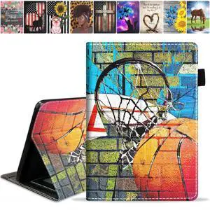 TBXOSTN Case for Kindle Fire HD 10 Tablet 10.1" (9th/7th Generation, 2019/2017 Release), Premium PU Leather Stand Cover with Smart Auto Wake, Basketball Art Print