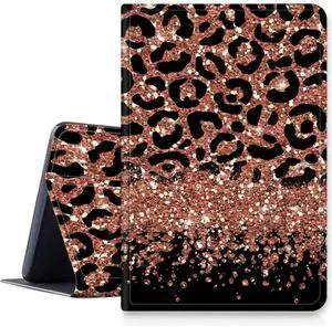 Leopard Glitter Case for All-New Kindle Fire HD 10 & 10 Plus Tablet (11th Generation, 2021 Release), PU Leather Folding Stand Cover with Multi-Viewing Angles Auto Sleep & Wake