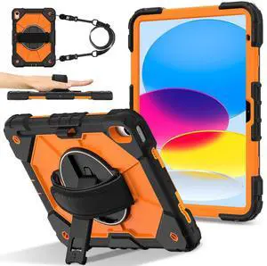WERLEO Case for iPad 10.2 inch 2021 2020 2019 9th 8th 7th Generation with Rotating Stand Pencil Holder Hand/Shoulder Strap, Heavy Duty Shockproof Protective Cover Orange