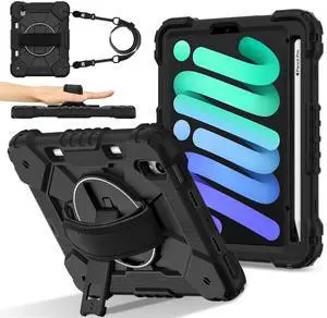 WERLEO Case for iPad Mini 7 A17 Pro 2024 / iPad Mini 6 2021 8.3 Inch with Rotating Stand Pencil Holder Hand/Shoulder Strap, Heavy Duty Shockproof Protective Cover for iPad Mini 7th/6th Generation 8.3"