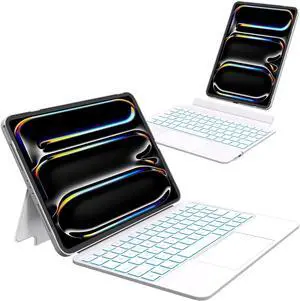 Otuoor iPad Pro 11 Inch Case with Keyboard (M4, 2024), Magnetic Detachable Keyboard Case for iPad Pro 11 Inch (5th Gen) with 7 Colors Backlight, Multi-Touch Trackpad, Portrait/Landscape Mode (Whtie)