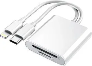 SD Card Reader for iPhone iPad USB-C & Lightening Dual Port Memory Card Reader USB 3.0 High-Speed Transfer No App or Driver Required Camera Adapter Supports SD/Micro SD/SDHC/SDXC/MMC